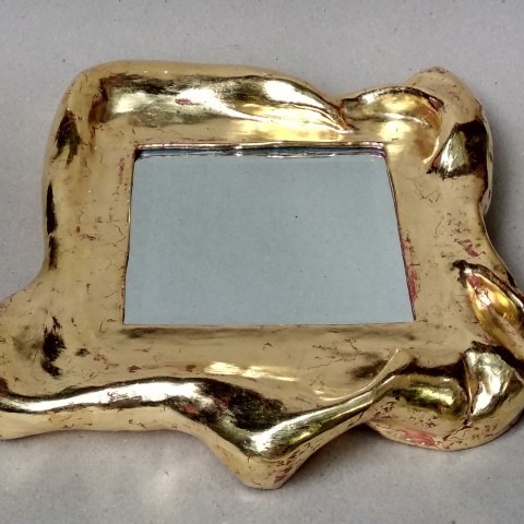 Beautiful unique stones from the sacred Patmos isle, in a paper-masse frame, covered with silver lea..